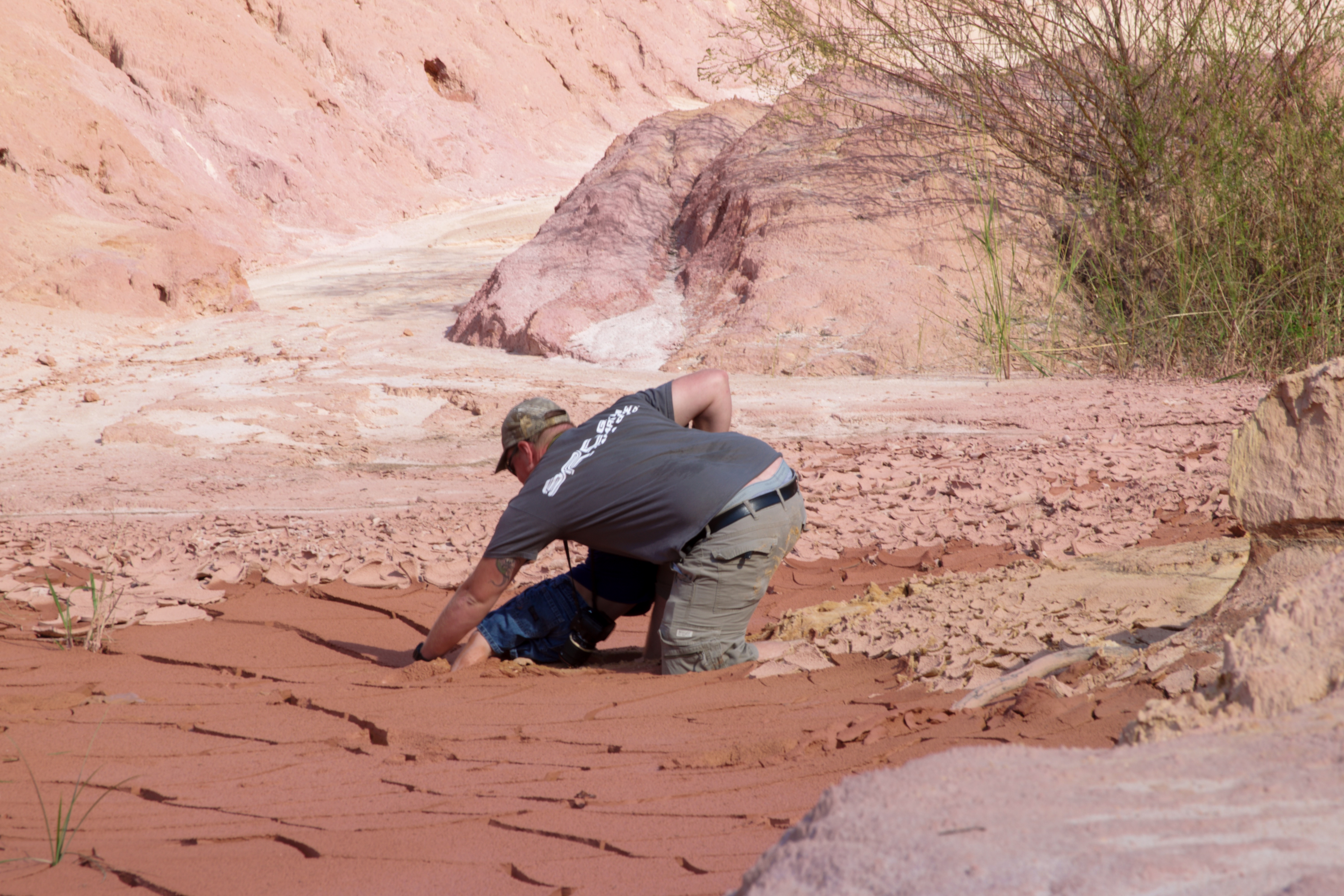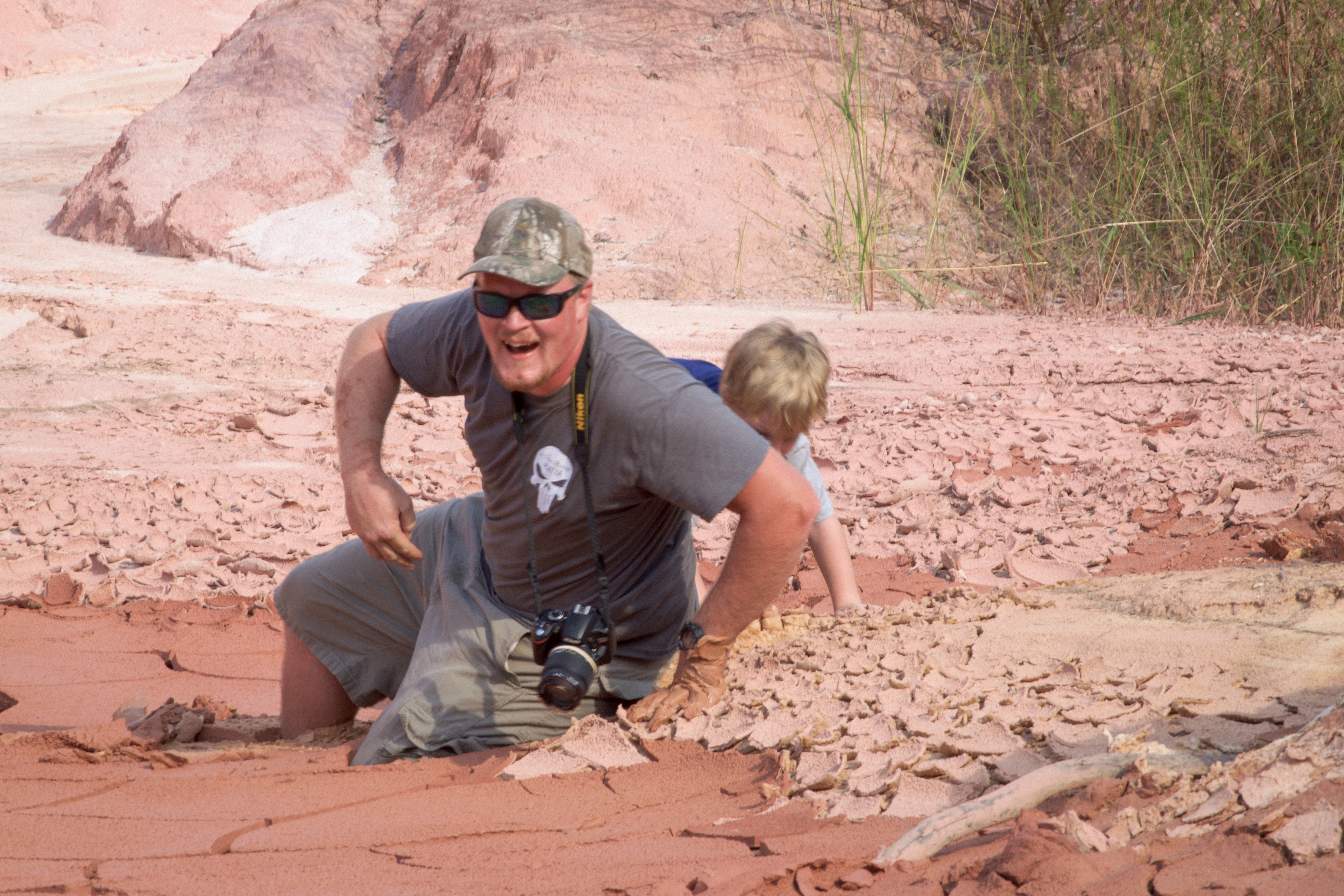 Tanner decided to make an all out assault on a clay bed that had begun to dry up, not near solid enough to walk along, He sunk up to his knees and asked where his legs went struggling to understand the situation he cried out for help. Nathan jumped to action, from the top of a loose mountain of clay he leaped about twenty feed into the soft bottom. Sprinting into the muck and slime to rescue his son. The others waited and watched as they had all witnessed their first real brush with adventure.